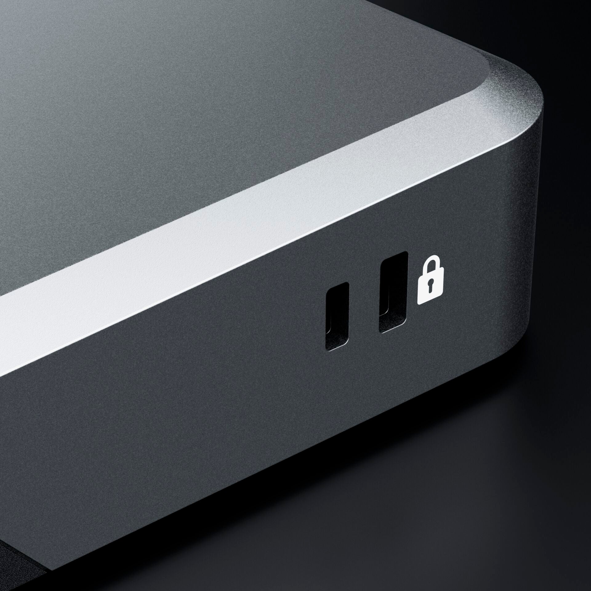 - Anschlussmöglichkeit für Sicherheitsschloss