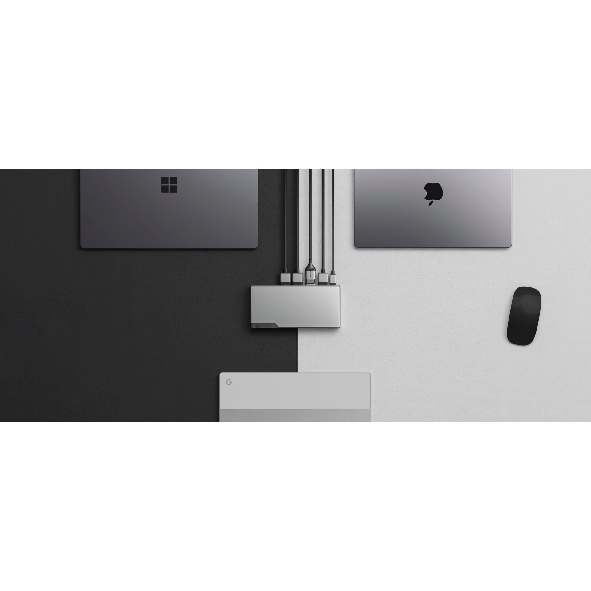 Die Dockingstation DV4 eröffnet zahlreiche Anschlussmöglichkeiten: Für die Datenübertragung stehen zwei USB-A-3.2-Anschlüsse mit einer Geschwindigkeit von bis zu 5 Gbit/s zur Verfügung. Zudem verfügt die Docking Station über jeweils einen SD- und MicroSD-Kartenslot sowie einen USB-C-Anschluss mit einer Geschwindigkeit von bis zu 5 Gbit/s und ein 3,5 Millimeter Kombibuchse für Audio. Der RJ45-Ethernet-Anschluss mit einer Geschwindigkeit von bis zu 1 Gbit/s sorgt für eine zuverlässige Netzverbindung.