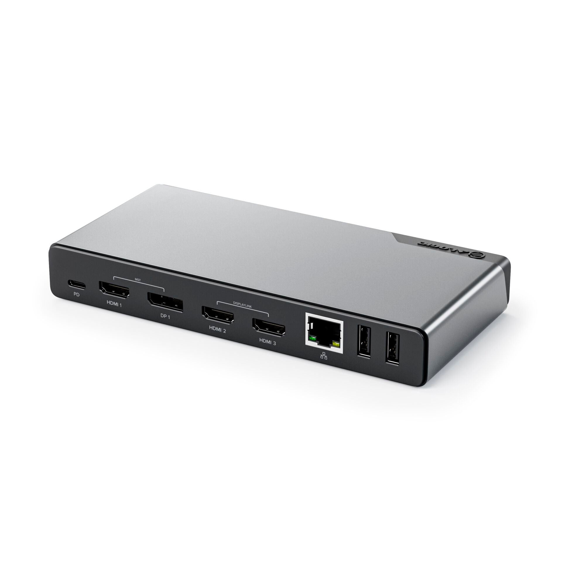 Die integrierte DisplayLink®-Technologie schafft eine universelle Kompatibilität und ermöglicht die Unterstützung von bis zu zwei 4K-UHD- und zwei 1080p-Full-HD-Bildschirmen, abhängig von den Fähigkeiten des angeschlossenen Computers und der vorgenommen Anschlusskombination. Für macOS-Treiber ermöglicht die DV4 Quad Display Docking Station die Unterstützung von bis zu drei Monitoren, darunter ein 4K-UHD- und zwei 1080p Bildschirme. Für USB-A-Hosts werden bis zu zwei 1080p Bildschirme unterstützt. Mit insgesamt drei HDMI-Anschlüssen und einem DisplayPort-Anschluss bietet die DV4 Quad Display Docking Station eine beeindruckende Bildqualität auf bis zu vier Monitoren.