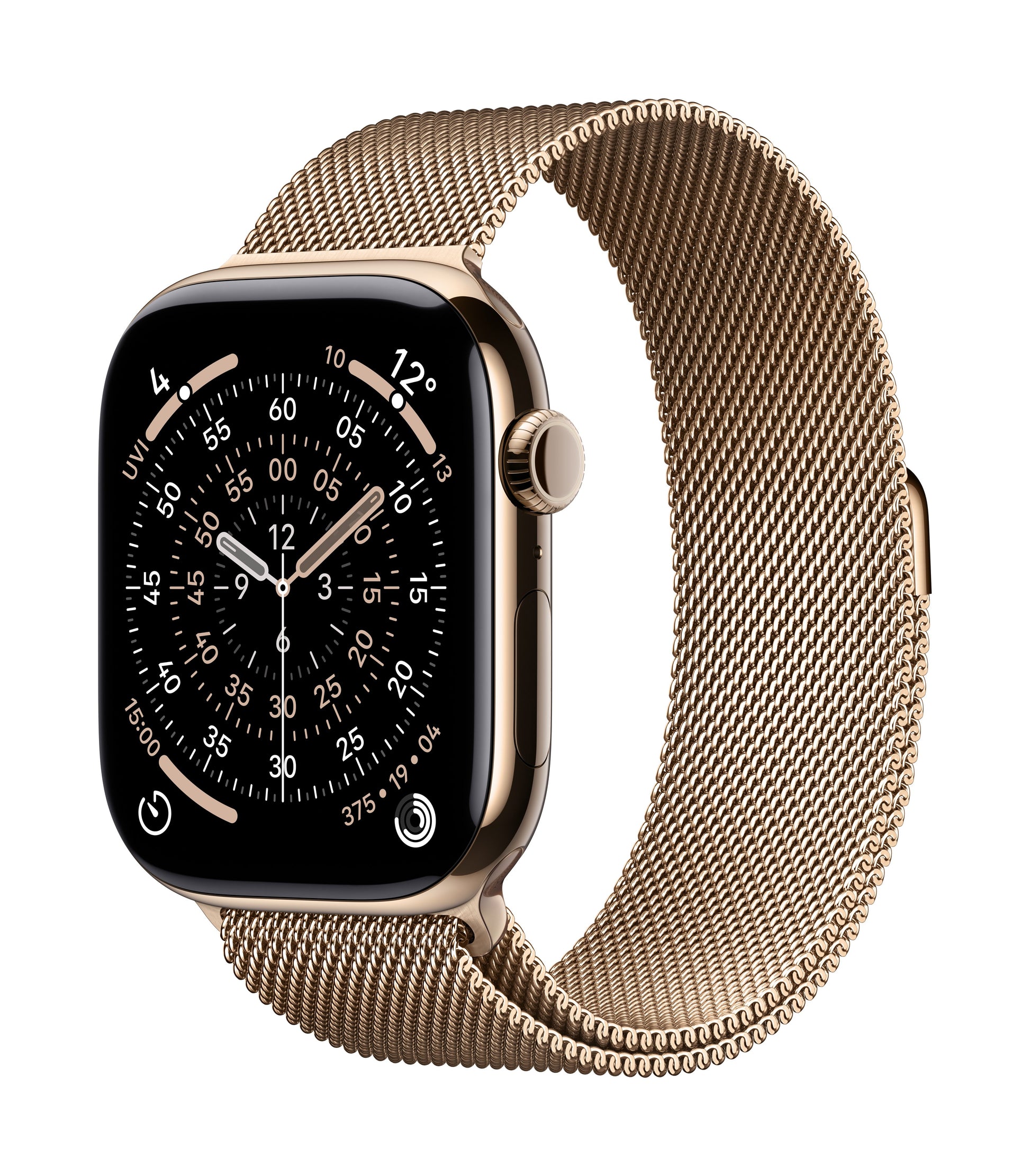 Apple Watch Series 11 GPS + Cellular 46mm Goldenes Titan Case mit Goldenem Milanaise Loop - S/M