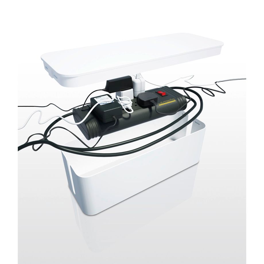 Wer kennt nicht das lästige Problem mit dem Kabelsalat?! Unter dem Schreibtisch, neben dem Computer oder hinter die Hi-Fi Anlage - überall diese herumliegenden Kabel und Mehrfachsteckdosen. Die Bluelounge CableBox, eine schlichte und formschöne Box mit Deckel und einem Schlitz an jeder Seite, ist die wohl einfachste und intelligenteste Lösung für dieses Problem.