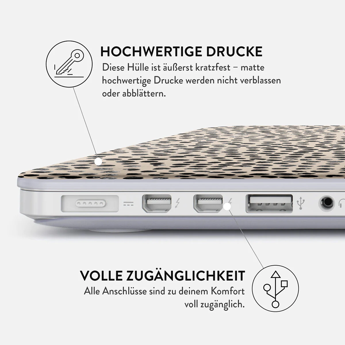 In jedem Fall ist die BURGA MacBook-Hülle ein unverzichtbares Accessoire für dein tägliches mobiles Arbeitstier. Sie wird mit zwei separaten Abdeckungen für die Ober- und Unterseite deines Laptops geliefert und bietet so einen 360°-Schutz. Trotzdem behält sie ihr schlankes Profil bei und lässt dein MacBook nicht klobig wirken. Die untere Abdeckung hat außerdem eine Belüftung, damit dein Laptop nicht überhitzt, wenn du zum Beispiel... nun ja... auf dem Schoß sitzt! Was willst du noch von einer MacBook-Hülle? Richtig - leicht zugängliche Anschlüsse. Auch dafür haben wir gesorgt.