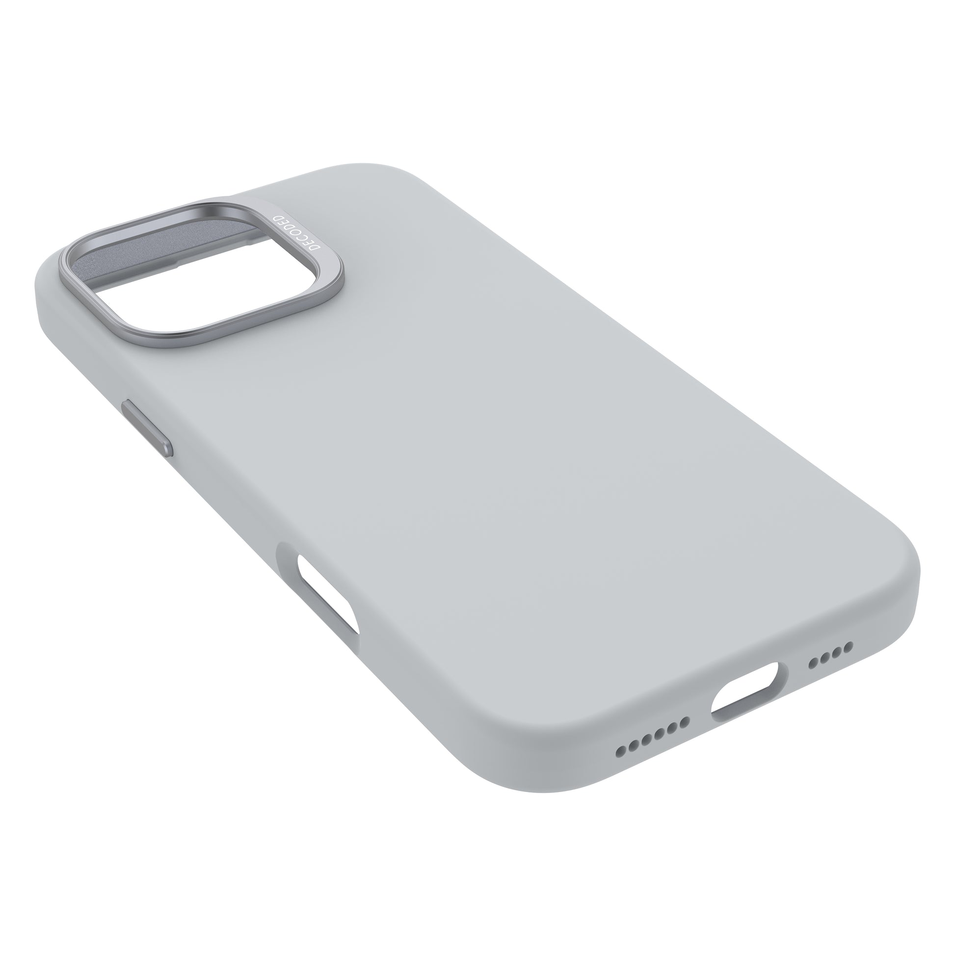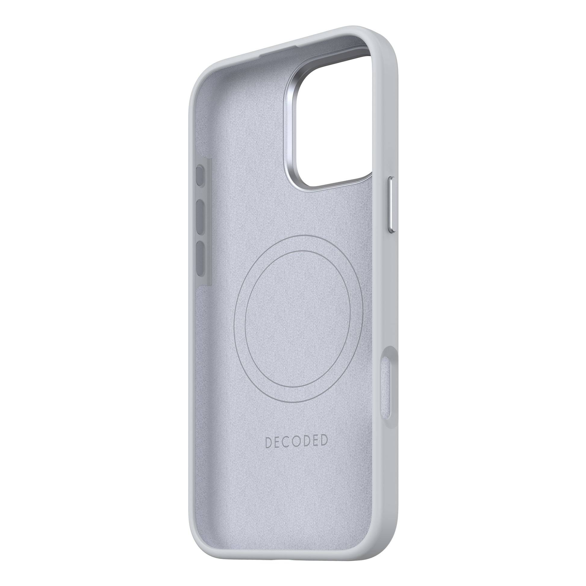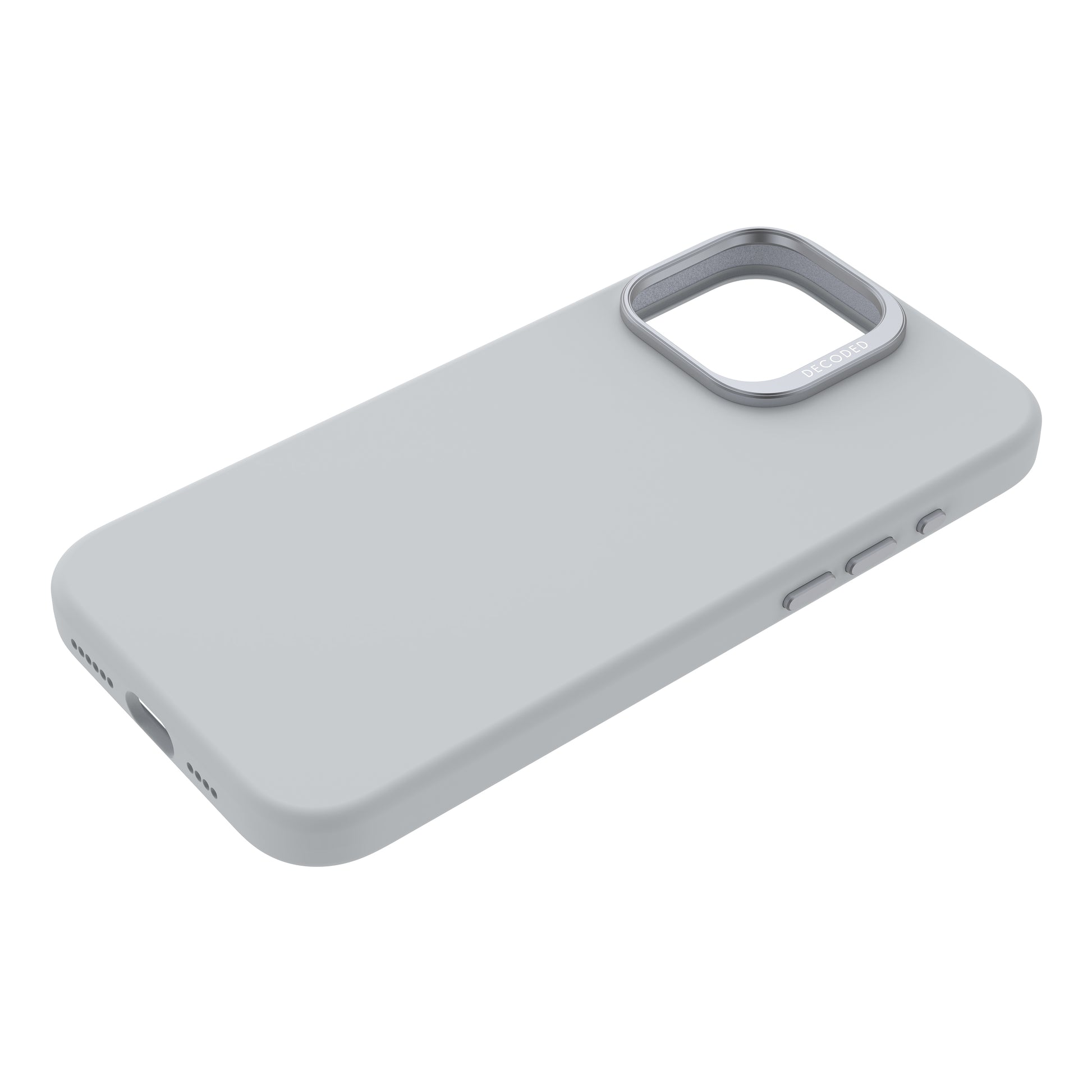 Das Decoded AntiMicrobial Silicone Backcover bietet eine Silikonhülle aus hochwertigem antimikrobiellem Polyurethan, und sorgt für ein besonders guten Halt in der Hand. Die Schutzhülle ist mit einer Polycarbonat-Unterkonstruktion ausgestattet, um das Smartphone vor Stößen und Stürzen zu schützen. Für maximalen Schutz verfügt die Silikonhülle über passgenaue Aussparungen und eine vollständig geschlossene Unterseite, die gleichzeitig einen festen Halt der Hülle gewährleistet. Ein erhöhter Rahmen vermeidet Kratzer auf dem Bildschirm des iPhones. Außerdem ist das Material der Hülle mit einer antimikrobiellen Formel ausgestattet, die Bakterien auf der Handyhülle zerstört und es medizinisch sauber hält. Im Inneren ist das Case mit Mikrofaser ausgekleidet und verhindert so oberflächlichen Einflüsse am Gerät. Der breite Metallring mit markeneigenem Schriftzug dient neben dem optischen Highlight dem besonderen Schutz der Kameralinsen. Da die Knöpfe ebenfalls aus Metall hergestellt sind, wird eine präzise Nutzung und längere Haltbarkeit ermöglicht. Das Silicone Backcover Case ist MagSafe-kompatibel und ermöglicht mittels des integrierten Magnets eine unkomplizierte Nutzung und Ausrichtung von weiterem MagSafe-Zubehör.