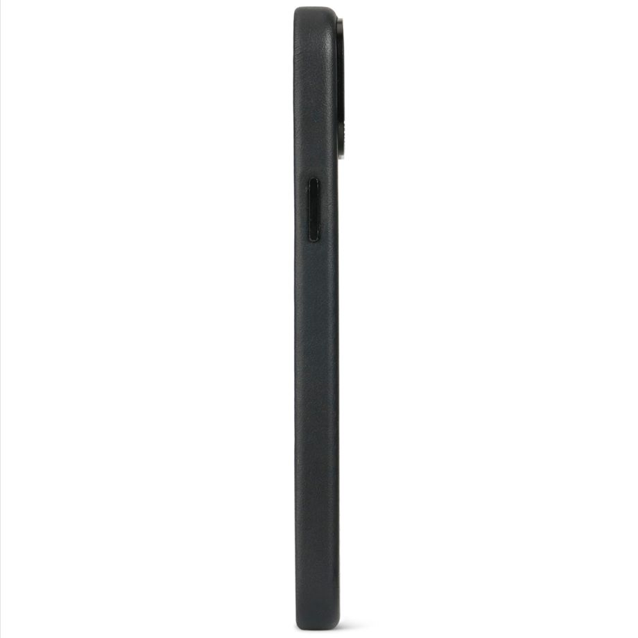 Leather Backcover ist eine leichte und schmale iPhone-Schutzhülle, die aus hochwertigem Anilinechtleder der Gerberei ECCO gefertigt ist. Das Design ist modern und minimalistisch gehalten, dennoch bietet die Hülle Rundumschutz für das iPhone: Erhöhte Ränder aus recyceltem TPU schützen den Bildschirm, die Hülle selbst bewahrt das Smartphone vor Staub und Kratzern und das stoßfeste Polycarbonat-Material schützt bei Stürzen aus bis zu einem Meter Höhe. Die Metallknöpfe an den Seiten sowie der zweilagige Kameraring aus Metall mit einem handgravierten Decoded Schriftzug sind nicht nur ein Highlight der Schutzhülle, sondern sorgen für zusätzlichen Schutz von Smartphone-Tasten und -Kamera. Backcover ist außerdem MagSafe-kompatibel und richtet sich dank integrierter Magnete ideal am jeweiligen MagSafe-Zubehör aus. Die Schutzhülle muss zum kabellosen Laden oder Laden über MagSafe nicht abgenommen werden.