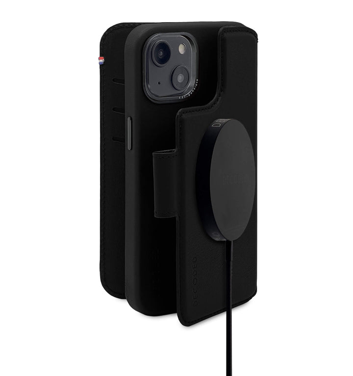 The DECODED 2-in-1 Detachable Wallet suitable for iPhone 14 Plus is multifunctional in use and therefore equipped with all conveniences. The Back Cover is easy to detach and attach to the Wallet Case by means of a magnets. So you have your most important cards always at hand, but is also only the Back Cover to use.The DECODED leather Detachable Wallet offers optimal protection against bumps and scratches without the design of your iPhone 14 Plus short. The unique 2-in-1 design offers great flexibility in use. The Back Cover is finished with two additional magnets for a perfect and secure alignment, allowing you to quickly and easily attach the back cover to the included Wallet. You quickly and easily switch from Wallet Case to Back Cover Case when you need to charge or make a call. This full case features premium ECCO aniline leather. The wallet offers recommended space for 3 cards.The integrated MagSafe magnets in the case extend the operation of your iPhone's MagSafe which ensures optimal placement of your iPhone in the Back Cover and supports the convenience of MagSafe accessories such as chargers, desk stands and card sleeves. The perfectly aligned magnets make wireless charging faster and easier than ever before. And when it’s time to charge, just leave the case on your iPhone and snap on your MagSafe charger, or set it on your Qi-certified charger. The wallet part doesn't have to be removed for charging.