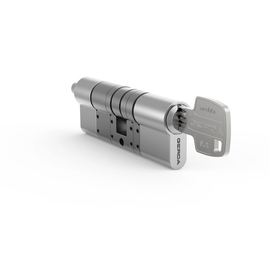 Der längenverstellbare Euro-Profilzylinder von GERDA ist für die Installation des smarten tedee-Schlosses erforderlich. Dank seiner modularen Bauweise lässt er sich flexibel an jede Türstärke anpassen. Die Länge auf der Außenseite (Schlüsselseite) kann zwischen 37 und 68 Millimeter angepasst werden. Die Länge auf der Innenseite (Schlossseite) variiert zwischen 30 und 61 Millimeter. Im Lieferumfang sind drei physische Schlüssel sowie eine Sicherungskarte enthalten.