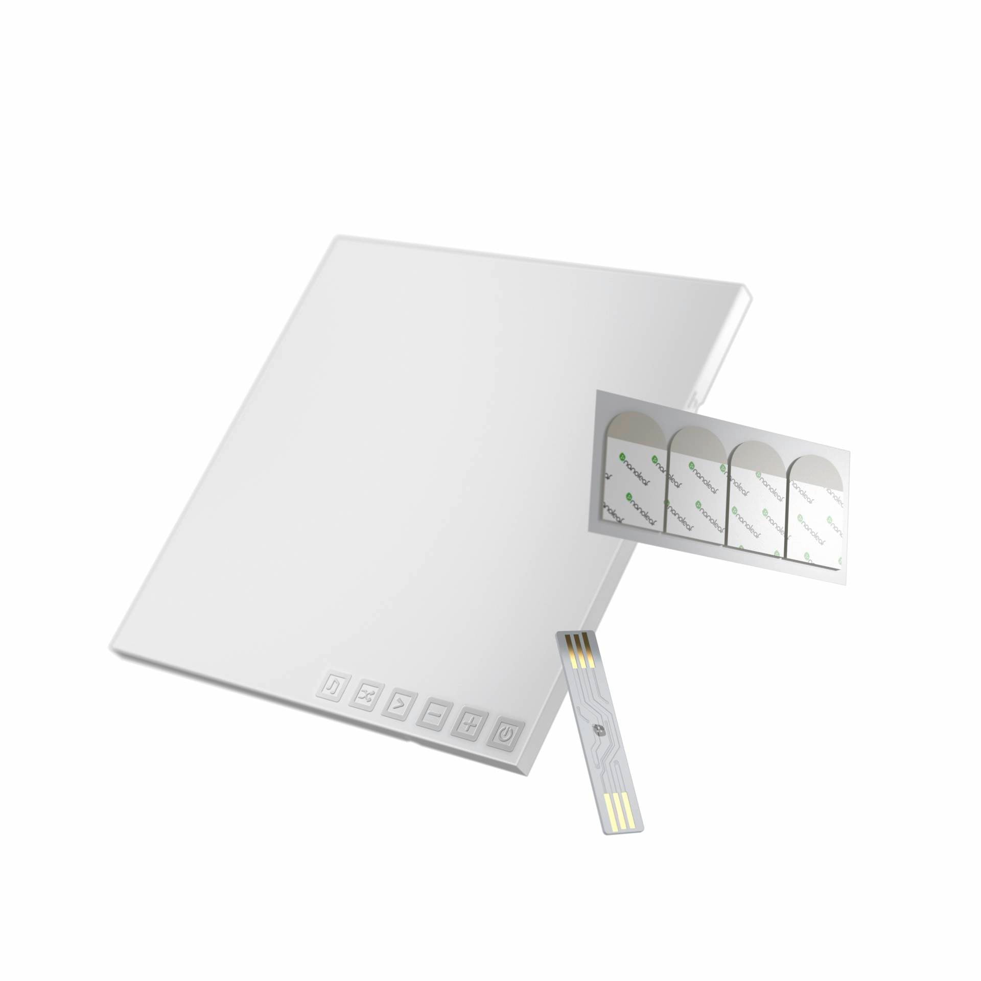 Nanoleaf Canvas ist ein smartes Beleuchtungssystem, das ein gänzlich neues Lichterlebnis schafft: Es reagiert in Echtzeit auf Berührungen, auf Musik und ist modular. Ob eine ganze Wand mit den smarten Lichtquadraten bedeckt oder ein persönliches künstlerisches Meisterwerk geschaffen wird – individuell für jeden Raum lässt sich das Wunschdesign durch ein modulares Stecksystem kreativ und einfach umsetzen. Das Lichtsystem ist mit Weißlicht und einer Auswahl von über 16 Millionen Farben ausgestattet und kann so an die verschiedenen Verwendungszwecke und Tageszeiten angepasst werden. Die Steuerung erfolgt per App, direkt über die Steuereinheit oder Sprachassistenten wie Siri, Google oder Alexa. Außerdem reagieren die Paneele auf Berührungen und dank eingebauter Audiosensoren sogar auf den Rhythmus von Musik. Auch ohne WLAN und die Nanoleaf-App lassen sich eine große Auswahl an vorprogrammierten Farbszenen über die Steuereinheit einstellen.