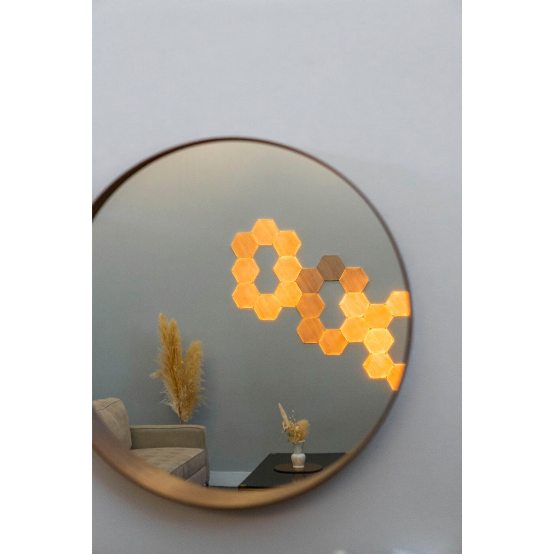 Die Nanoleaf Elements verbinden auf raffinierte Weise smarte Technologie und elegante Beleuchtung. Die modularen Paneele, veredelt mit einer Holzmaserung, lassen sich individuell anordnen und verleihen der Inneneinrichtung des Hauses einen modernen und zugleich naturnahen Look. Die Hexagons in Holzoptik dienen als elegantes, geometrisches Wanddekor und erzeugen einen natürlichen Lichtschein, der den Innenraum harmonisch durchflutet. Die Beleuchtungsoptionen von kühlen bis warmen Lichttönen schaffen beruhigende, harmonische Lichtszenen, die sich langsam bewegende Wolken oder die warme Atmosphäre eines knisternden Kaminfeuers imitieren. So entsteht ein perfektes Ambiente für die Leseecke oder eine gemütliche Abendstimmung. Dabei kann aus voreingestellten Lichtszenen und Bewegungsanimationen gewählt oder eigene zeitlose Wandbilder aus Licht mit der App gestaltet werden. Eine einfache Montage an der Wand wird mit den mitgelieferten Klebestreifen möglich.
