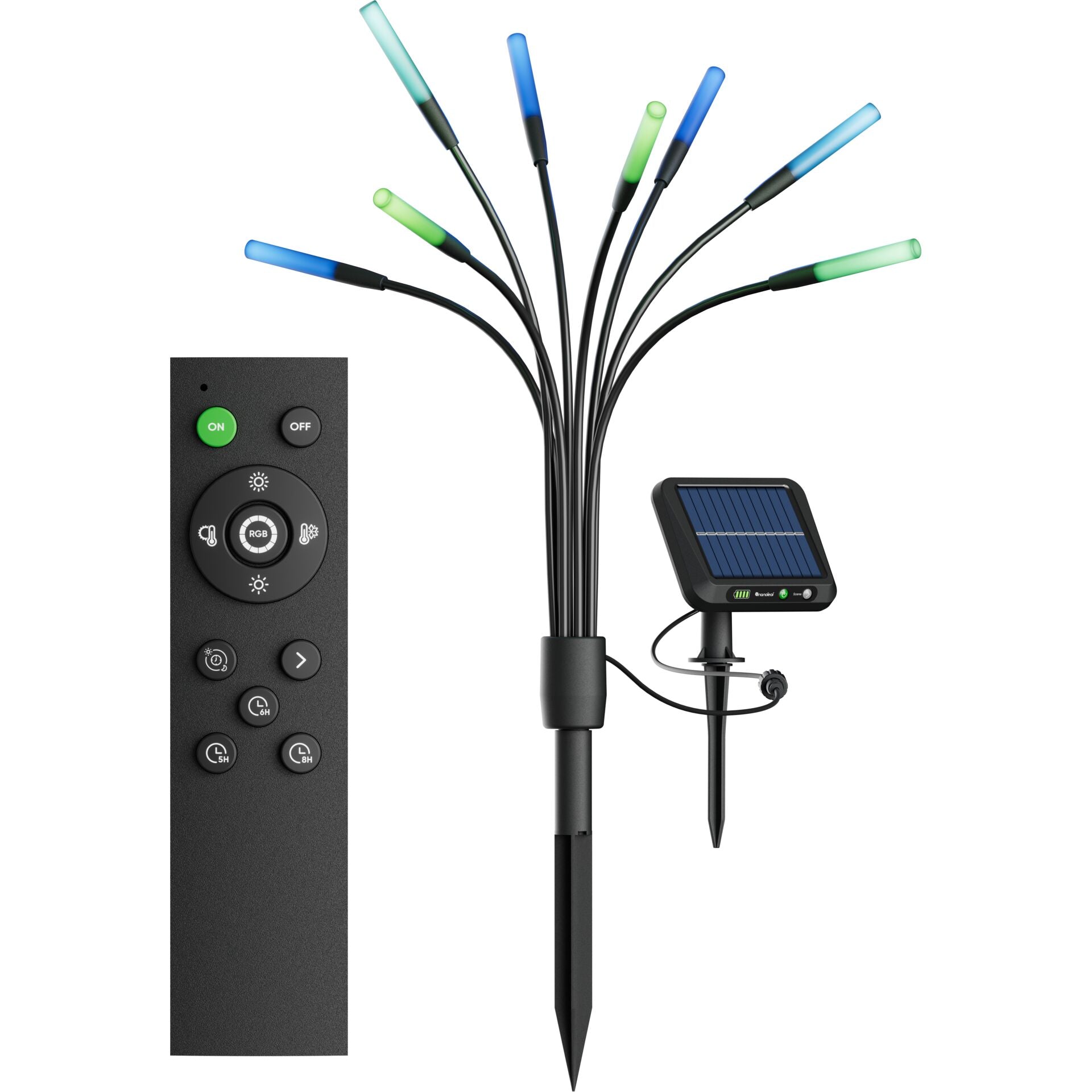 • Steuerung über Tasten am Solarpanel und über die kompakte Fernbedienung (inkl. Batterien), die bis zu 20 Leuchten gleichzeitig bedienbar