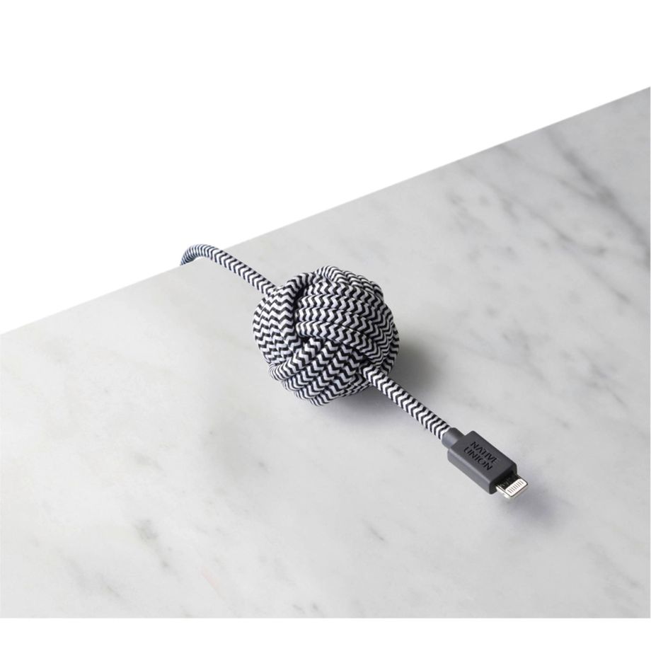 Das Native Union Night Cable macht dem endlosen Suchen nach dem Ladekabel ein Ende. Das an dem Ladekabel angebrachte Gewicht im Design eines Knotens, lässt sich an beliebige Stellen des Ladekabels bewegen und stellt dann sicher, dass das Ladekabel an der Stelle liegen bleibt, wo es hingelegt wurde. Dank der hochwertigen Materialien und verstärkten Struktur ist das Ladekabel außerdem besonders robust. Das Night Cable unterstützt schnelles Laden und garantiert mit drei Metern Länge besonders viel Flexibilität. So kann das iPhone auch während des Ladevorgangs bequem genutzt werden. Das Kabel ist MFI- und USB-IF-zertifiziert.