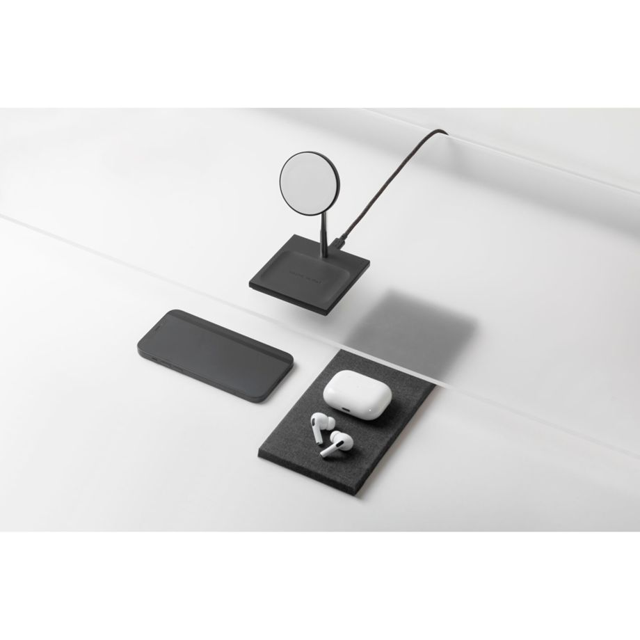 Der Native Union Snap 2-in-1 Wireless Charger vereint den Komfort einer magnetischen Halterung mit der Leistung einer dualen Ladestation. Der Charger wurde für iPhones mit MagSafe-Kompatibilität und Qi-fähige Geräte entwickelt und verfügt über eine magnetische Ladefläche sowie ein Ladepad für kabelloses Aufladen. iPhone-Modelle mit MagSafe-Kompatibilität werden durch die magnetische Halterung nicht nur mit einer Leistung von bis zu 7,5 Watt geladen, sondern auch in einem beliebigen Winkel am Ladegerät festgehalten. So hat der Nutzer die Hände frei – ideal für FaceTime-Gespräche oder beim Streamen der Lieblingsserie. Auf dem Ladepad können dank integrierter Ladespule gleichzeitig Qi-fähige Geräte, wie zum Beispiel AirPods Pro, mit einer Leistung von bis zu fünf Watt geladen werden. Die rutschfeste Polsterung an der Unterseite des Gerätes verhindert ein Verrutschen und sorgt für einen sicheren Stand. Dank seines minimalistischen und modernen Designs passt das Ladegerät zu jeder Einrichtung, der Sockel aus einer Zinklegierung verleiht dem Gerät ein hochwertiges Aussehen. Im Lieferumfang ist außerdem ein geflochtenes USB-C auf USB-C-Kabel enthalten.