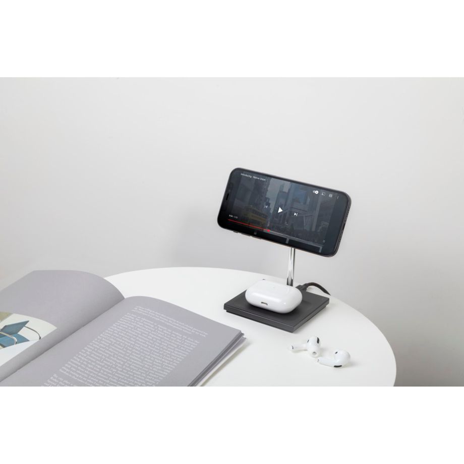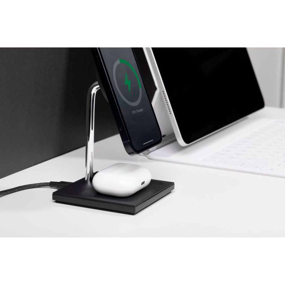 - 2-in-1-Ladegerät für das gleichzeitige Laden von zwei Geräten über MagSafe und Kabelloses Laden