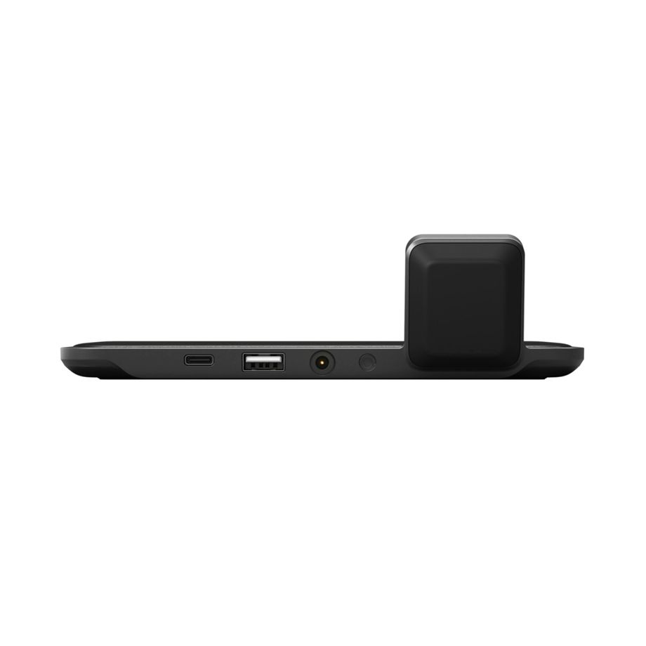 - Drei Ladespulen versorgen die Geräte mit bis zu 10W pro Spule (7,5W Ladeleistung, wenn zwei Geräte auf der Ladefläche gleichzeitig geladen werden)