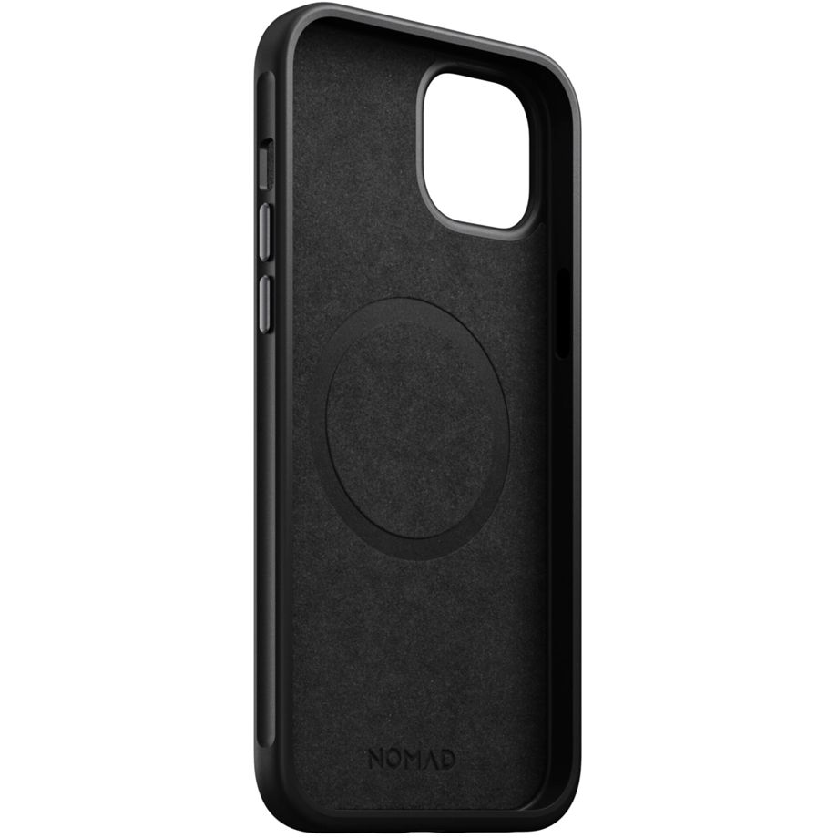 Das Nomad Modern Leather Case ist eine schlanke Kombination aus einer robusten Polycarbonat-Hülle und einer hochwertigen Echtlederummantelung. Dank des integrierten Magnetfeldes ist die Hülle mit beliebigem MagSafe-Zubehör kompatibel. Das Case verfügt neben eloxierten Aluminiumtasten über einen äußeren und einen inneren TPU-Bumper. Der innere Bumper hilft dabei Stöße zu absorbieren und beim Aufprall über das gesamte Case zu verteilen. So schützt das Case in Kombination mit dem äußeren TPU-Bumper das iPhone selbst bei Stürzen aus bis zu 2.5 Metern Höhe. Da der Rand des TPU-Bumpers außerdem leicht erhöht ist, bietet die Hülle auch Schutz vor Kratzern am Display. Im Innern verhindert eine weiche Mikrofaserauskleidung Kratzer am Gerät. Das hochwertige Echtleder ist nachhaltig gewonnen und entwickelt außerdem mit der Zeit durch die entstehende Patina ein individuelles Aussehen. Das Modern Leather Case ist kompatibel mit Qi-Ladegeräten und verfügt außerdem über eine doppelte Befestigungsmöglichkeit für ein Schlüsselband. Das Case ist das perfekte Zubehör für jeden, der sein iPhone immer und überall geschützt wissen möchte, aber gleichzeitig nicht auf ein hochwertiges Aussehen verzichten will.