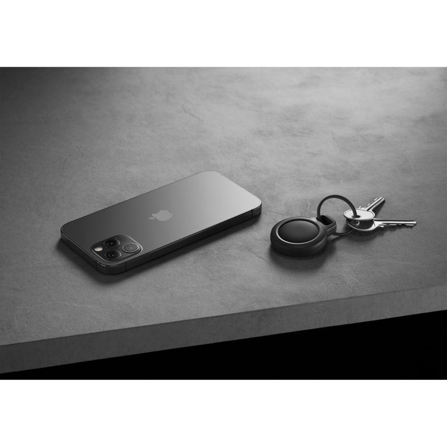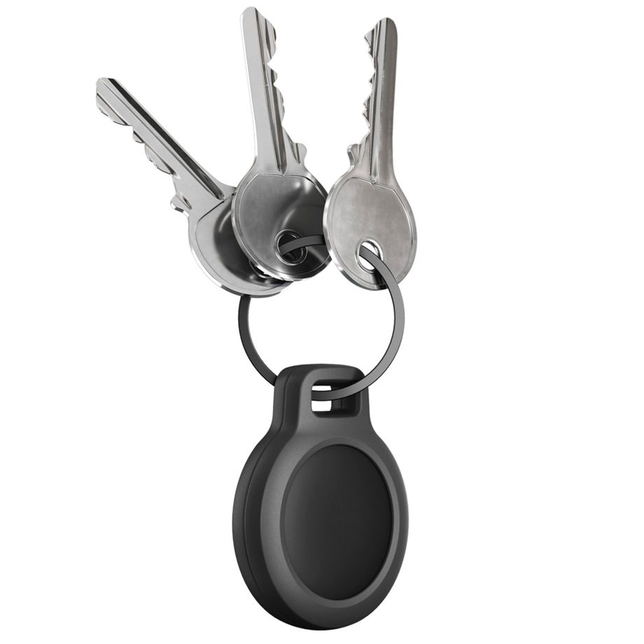 - AirTags können mit dem Schlüsselanhänger bequem am Gepäck, Schlüsselbund oder Halsband des Haustiers befestigt werden