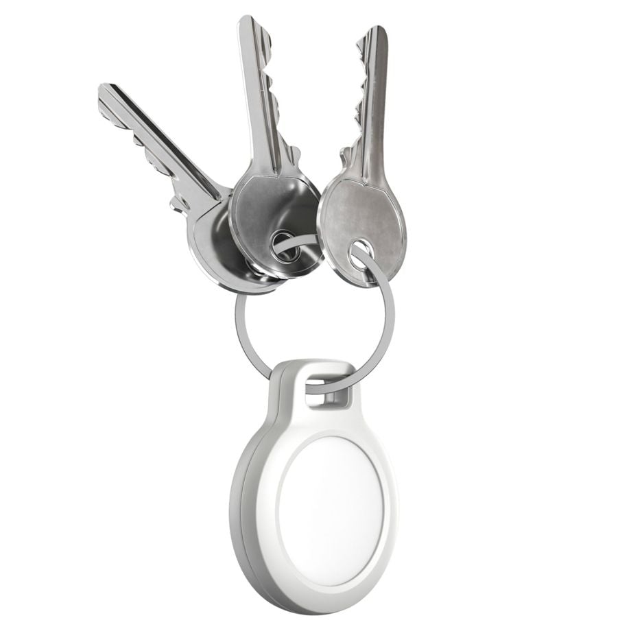 - AirTags können mit dem Schlüsselanhänger bequem am Gepäck, Schlüsselbund oder Halsband des Haustiers befestigt werden