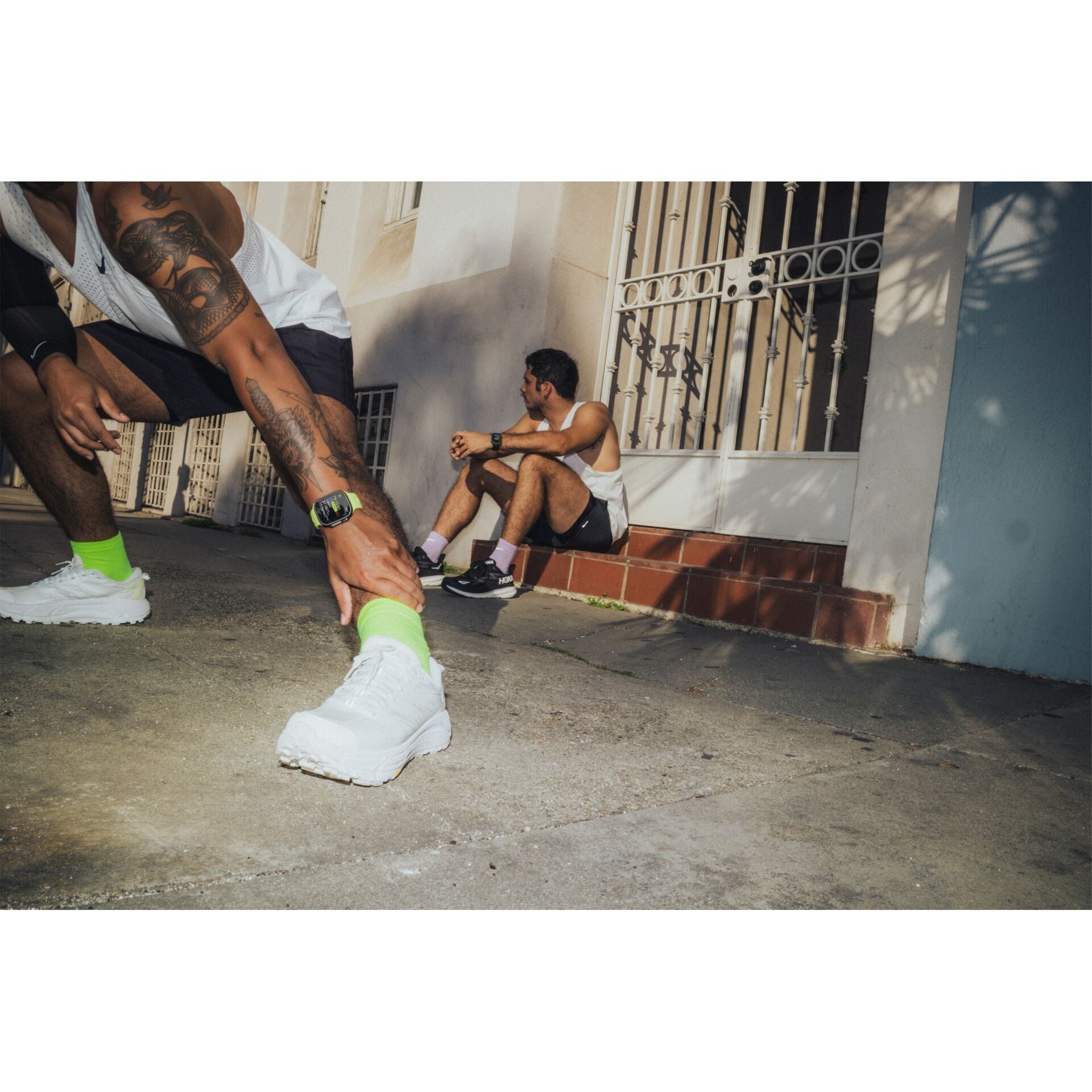 Gefertigt aus kompressionsgeformtem, PFAS-freiem FKM-Fluorelastomer, bietet das Tempo Band eine Kombination aus Flexibilität, Widerstandsfähigkeit und vollständiger Wasserfestigkeit. Die dezente Oberflächenstruktur in Verbindung mit innenliegenden Belüftungskanälen sorgt für gute Atmungsaktivität – besonders spürbar bei sportlicher Nutzung oder bei langem Tragen im Alltag.