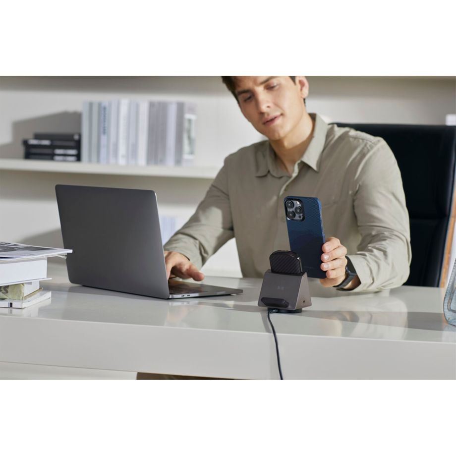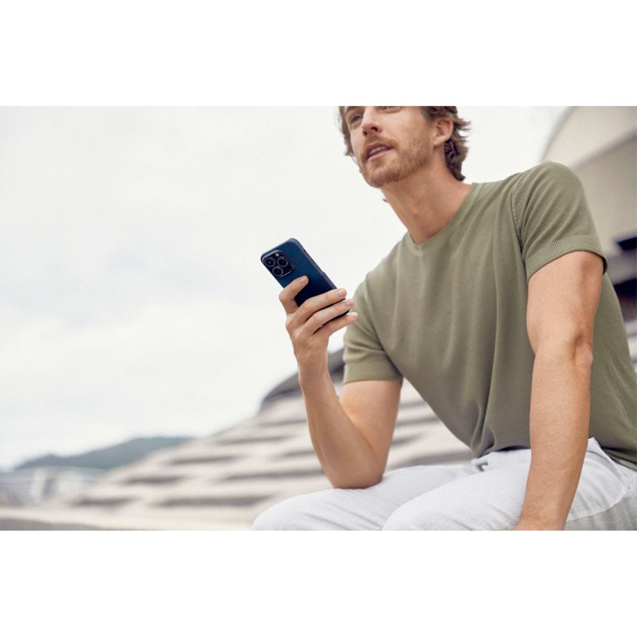 Die iPhone-Schutzhülle verfügt über einen integrierten NFC-Chip für die Authentifizierung von NFC-fähigen Hüllen und ist MagSafe-kompatibel. Somit muss die Hülle zum Laden nicht abgenommen werden und das MagSafe-Zubehör hält magnetisch am Case und iPhone fest.