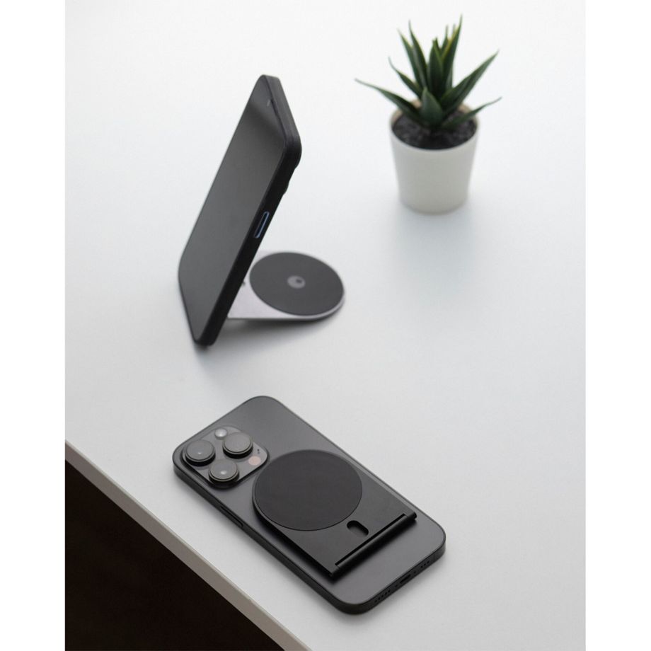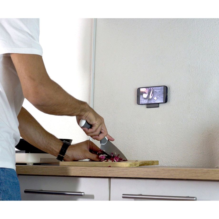 Die schlanke und magnetische EDGE-Halterung lässt sich mit der Klebefläche an einem beliebigen Laptop oder Tablet befestigen sowie rückstandslos entfernen. Dank der integrierten N52-Magnete lässt sich das Smartphone oder Tablet einfach und mit starkem Halt in der gewünschten Position anbringen. Um das Gerät in jeden Winkel bequem bewegen zu können, bietet die 2,5 Millimeter dünne und bewegliche Halterung aus Aluminium die nötige Stabilität.