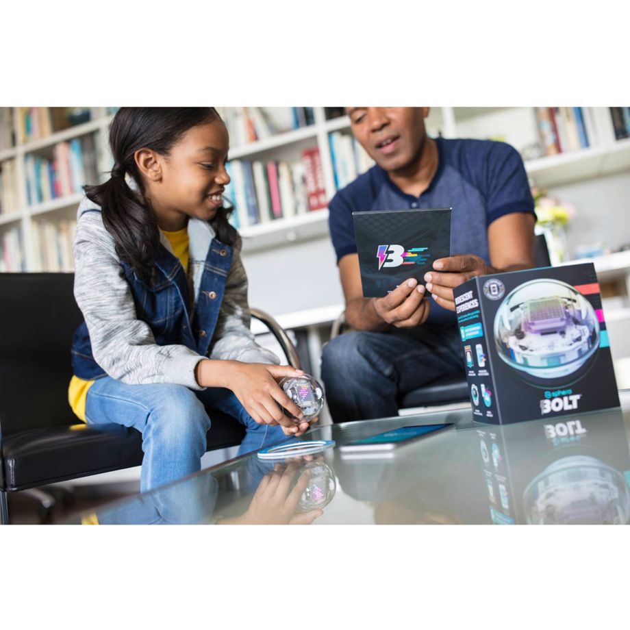 Mit seiner fortgeschrittenen Technik garantiert BOLT Spaß beim Programmieren und Spielen für alle Altersklassen. Der kleine Roboter hat alle Features des SPRK+ und noch viele mehr. Die 8x8 LED-Matrix des appgesteuerten Roboters ist programmierbar und zeigt Animationen, Zeichen, Texte und Daten an. Ein Lichtsensor erfasst die Geschwindigkeit, Beschleunigung und Richtung des BOLT und ein eingebauter Kompass hilft bei der Orientierung. Via Infrarot können mehrere BOLT miteinander kommunizieren und interagieren, sodass sich weitere Spiel- und Programmiermöglichkeiten eröffnen. Durch Zeichnen auf dem Bildschirm, Scratch™ Blocks oder JavaScript lassen sich individuelle Spiele entwickeln oder Klassiker wie Pac-Man und Snake spielen und so Grundkenntnisse im Programmieren erlernen. Dabei wird BOLT je nach Spiel über die App am Boden gesteuert oder in der Hand gehalten und per Handbewegung kontrolliert.