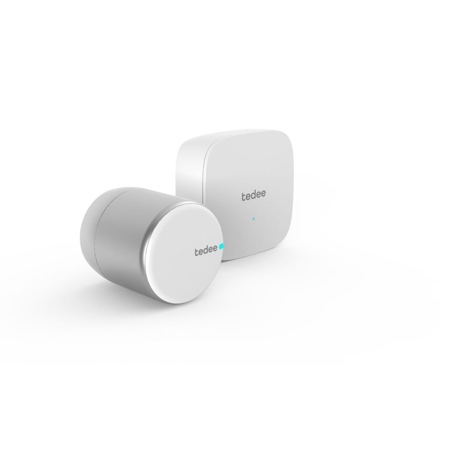 - tedee-Bridge: Ermöglicht eine WLAN-Anbindung des Türschlosses, um es aus der Ferne zu steuern, den Status abzufragen und Echtzeitbenachrichtigungen zu erhalten, Integration in die Smart-Home-Systeme Amazon Alexa, Fibaro, Google Home und Loxone und Integration in weitere Smart-Home-Systeme über Web-API